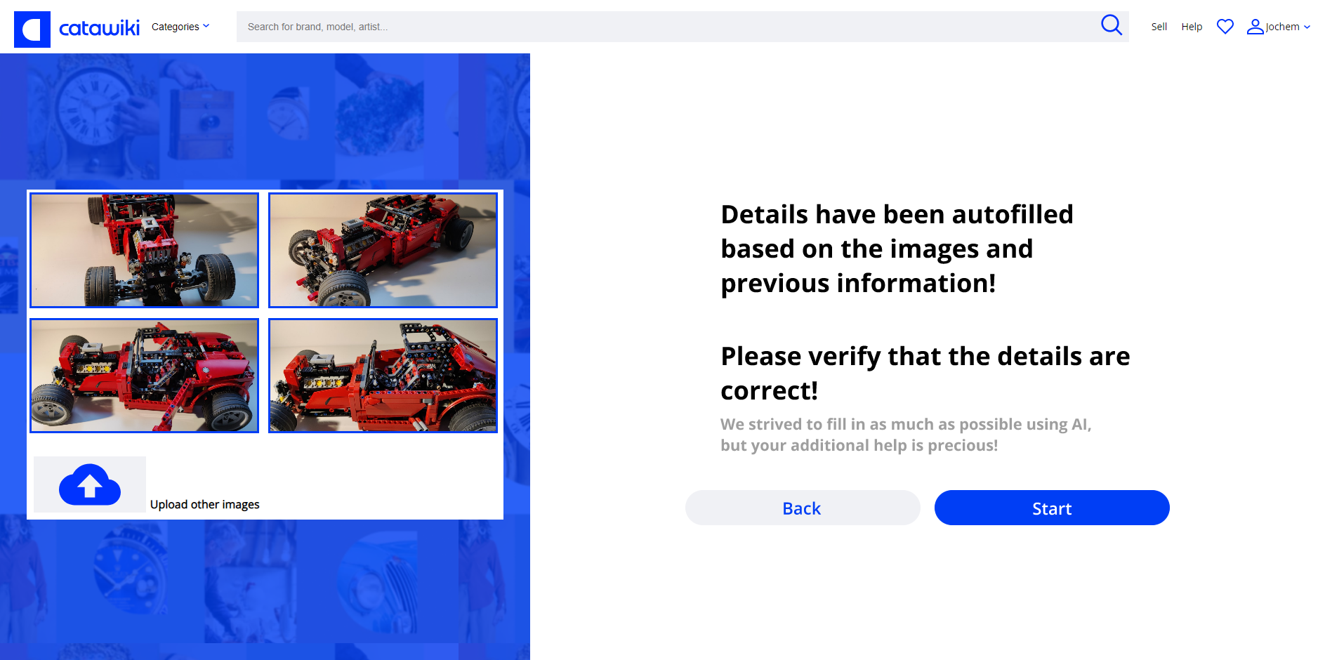 In this project, we were tasked with redesigning the auction submission flow for our client Catawiki. This is a website where people can auction items, ranging from vintage furniture, to cars and to LEGO. Basically anything that can be collected, can be auctioned on this site. Submitting an auction can be a long and tedious process, involving long forms of information to type in. Our goal was to use AI to improve the user experience when creating a new submission. While doing this, a big focus was the fact that AI will not always be correct and that we needed to find a way to deal with this.